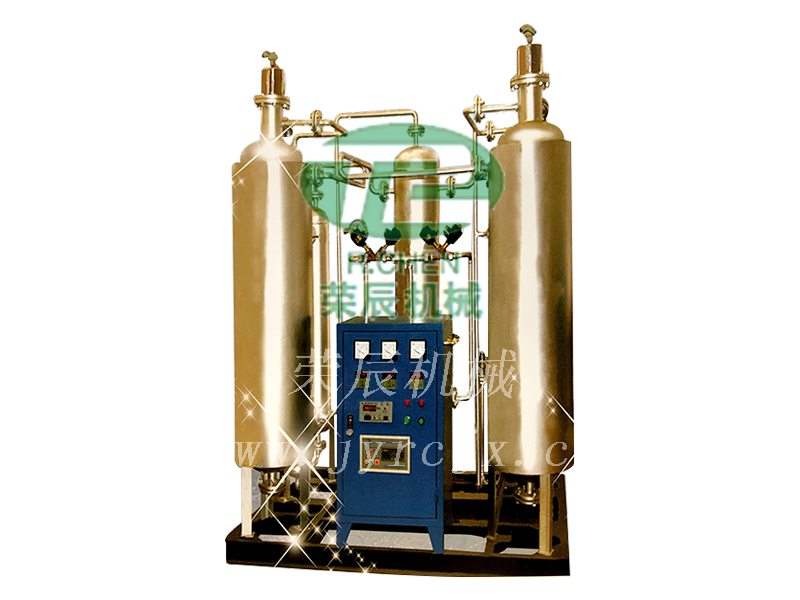 一定流量、純度的普氮和氫氣同時進入裝置中,在混合器上充分混合后,進入除氧器裝置,在脫氧催化劑的作用下產(chǎn)生2H2+O2=2H2O的化學反應,達到脫氧目的。脫氧后氮氣中水氣經(jīng)過冷卻器脫水,然后氮氣繼續(xù)進入由二只A和B組成的干燥器干燥,使氮氣露點達到≤-60℃左右,其中一只干燥器進行吸附干燥,另一只把已吸附飽和水氣的干燥器進行再生,為下一周期吸附工作做好準備。經(jīng)干燥后的氮氣通過過濾器除塵,最后得到的便是高純氮氣。